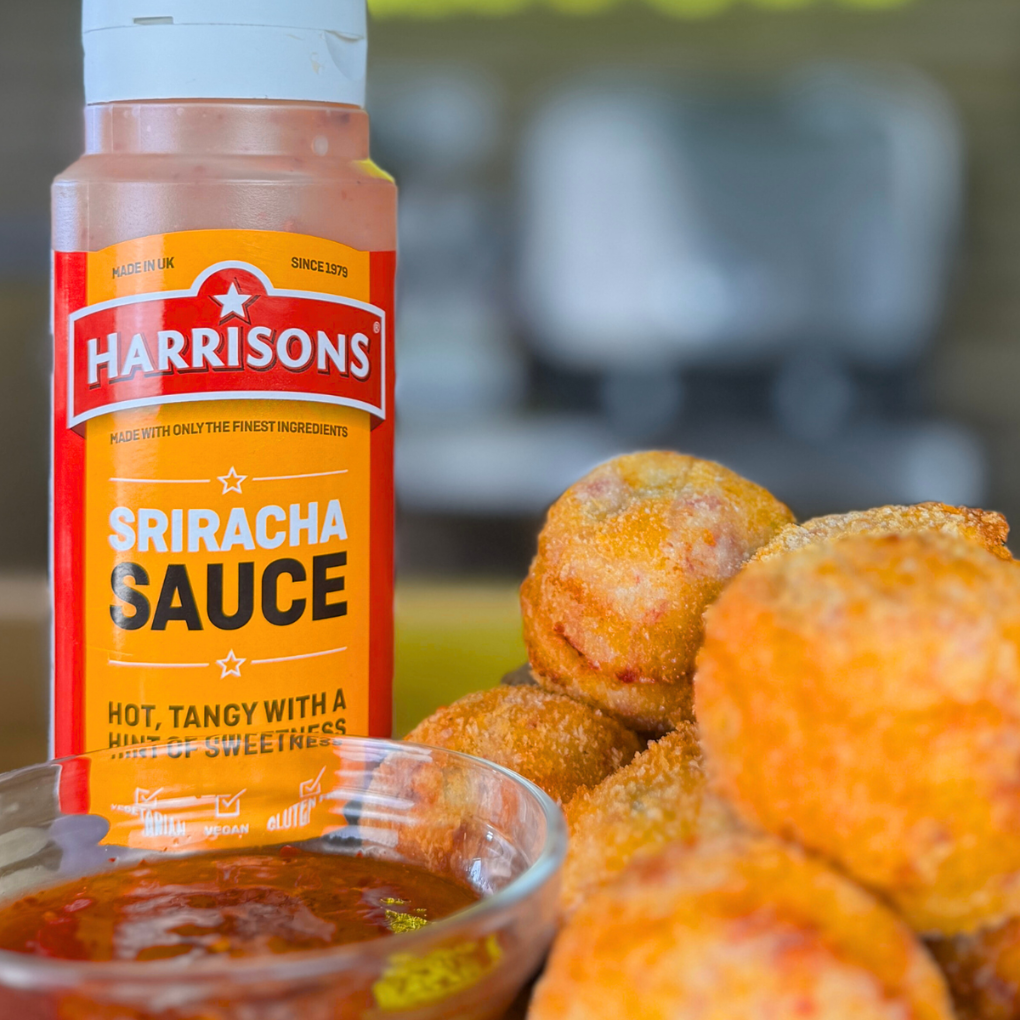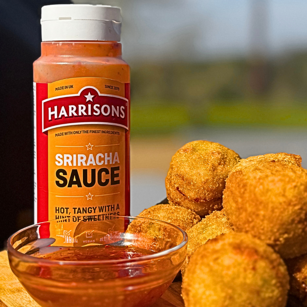 Product image 1Harrisons Sriracha Sauce 500ml bottle with hot, tangy, and slightly sweet flavor, vegan and gluten-free condiment