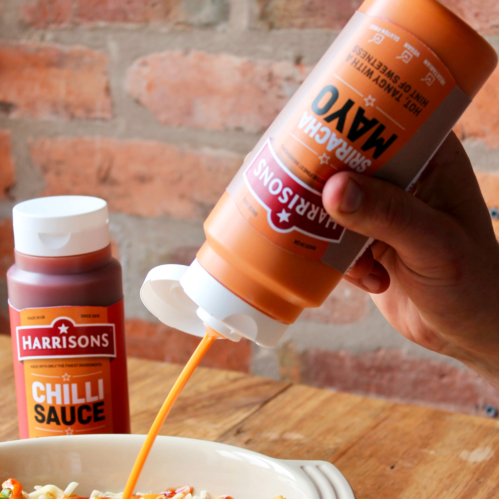 Product image 1Harrisons Sriracha Mayo 500ml bottle with spicy, creamy condiment label