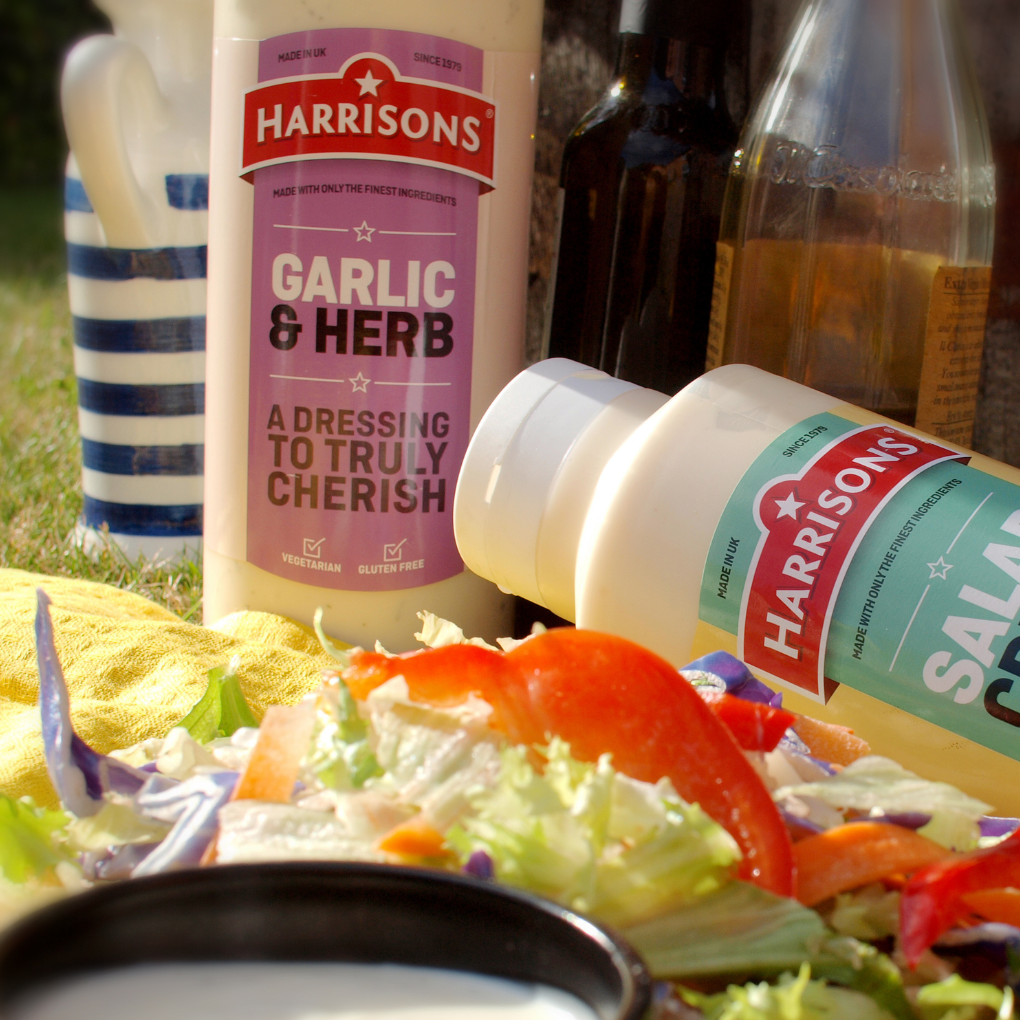Product image 1Harrisons Garlic & Herb 500ml bottle dressing with gluten-free and vegetarian labels